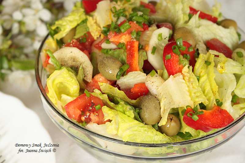 składniki: 1/2 główki sałaty lodowej 1 świeży ogórek gruntowy 1 mała papryka…