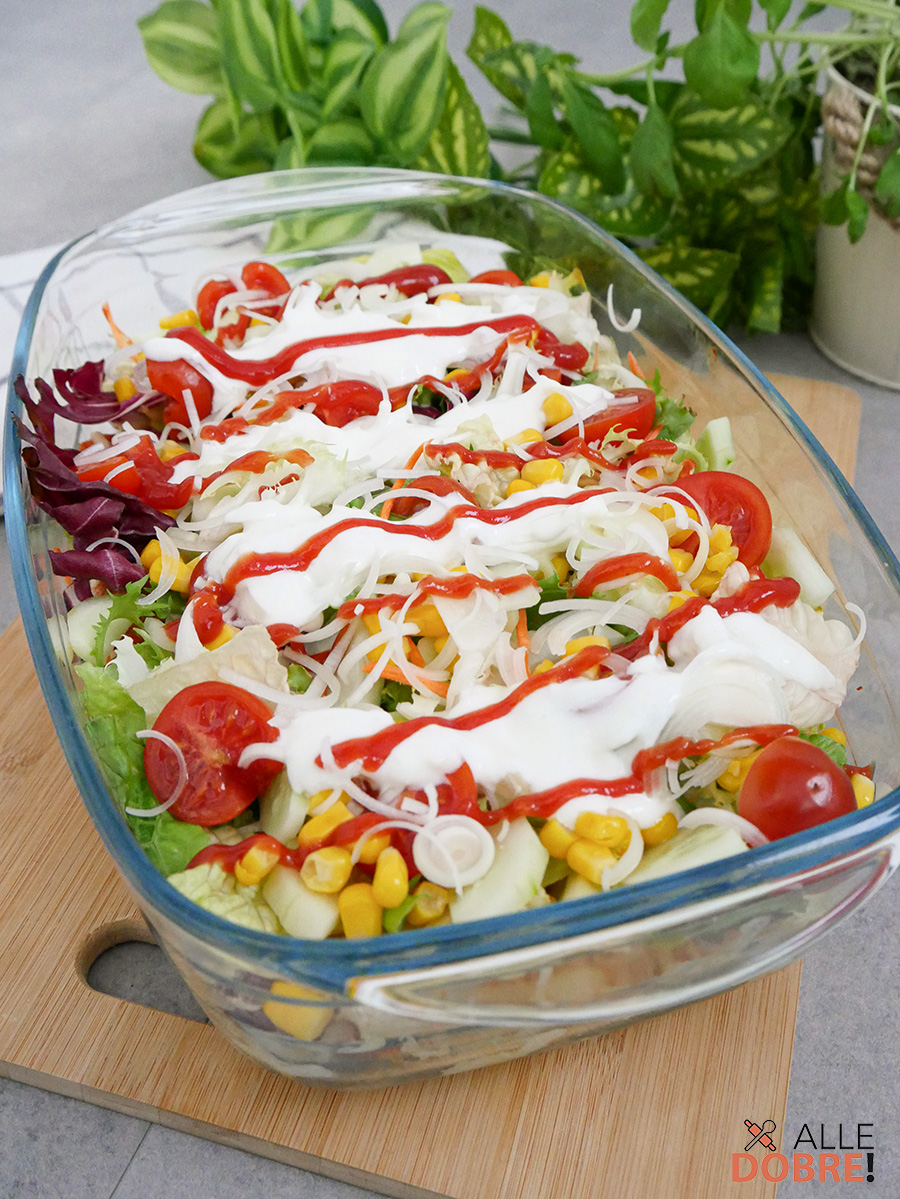 Kapsalon składa się z frytek, soczystego mięsa, rozpływającego się sera i kolorowej sałatki. Całość polana jest sosem czosnkowym i ketchupem. Przygotowanie tego dania nie jest skomplikowane,