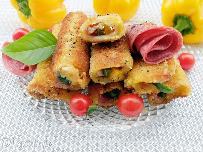 Krokiety/roladki z chleba tostowego (z serem, salami i papryką)