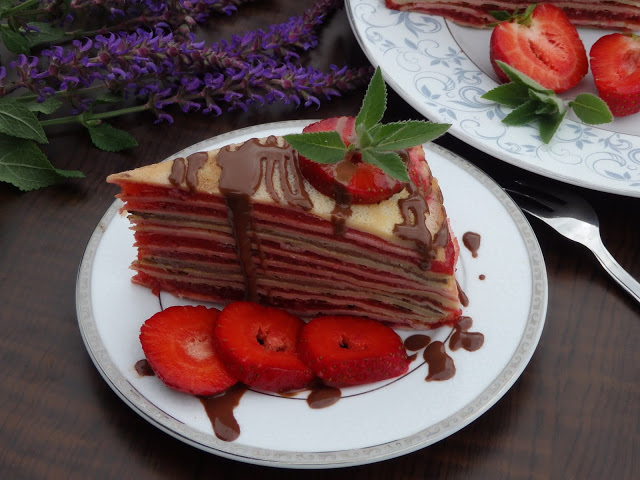 Torcik naleśnikowy na słodko to efekt moich ostatnich poczynań w kuchni. Sezon na truskawki więc z musem tuskawkowym ale sprawdzą się tu każde miękkie owoce, które można zmiksować na mus. No i naleśniki które są u mnie najulubieńsze pod każdą postacią. Dorzuciłam jeszcze serek mascarpone o smaku czekoladowym, który po