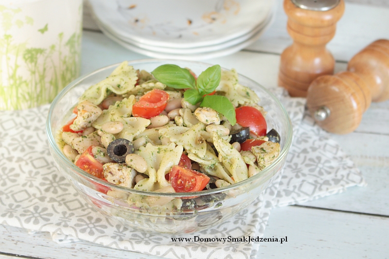 składniki: 100 g makaronu kokardki 1 puszka białej fasoli Jamar 7-10 pomidorków…