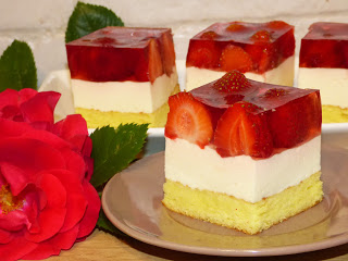 Orzeźwiające, lekkie ciasto z galaretką, które idealnie sprawdzi się przy upałach. Najlepiej smakuje mocno schłodzone z lodówki.