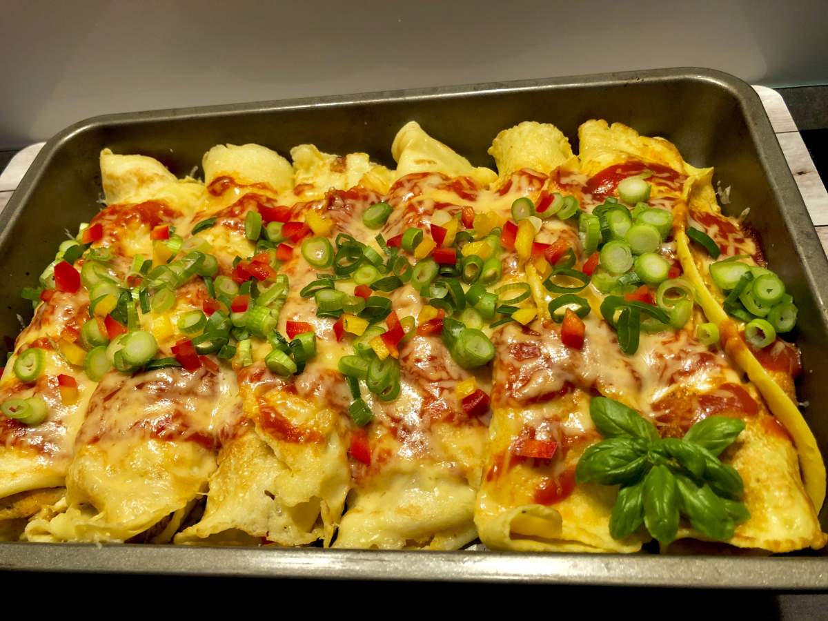 Naleśniki zapiekane z kurczakiem i warzywami Zawijane naleśniczki z mięsno-warzywnym farszem zapiekane…