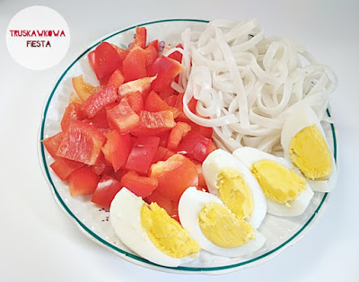 2 jaja200g papryki czerwonej50g makaronu ryżowego suchego