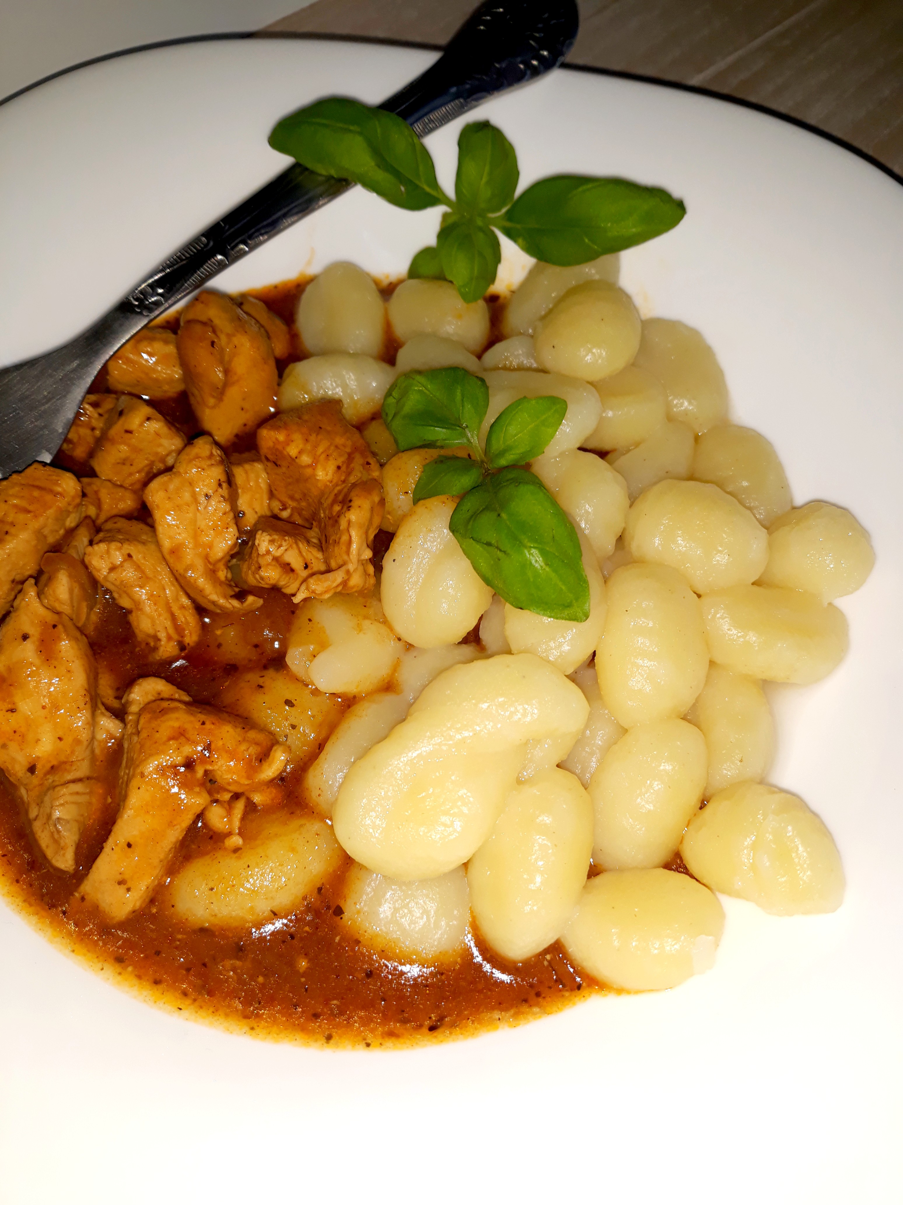 Ziołowo-pomidorowy sos z kurczakiem i kluseczkami (gnocchi)