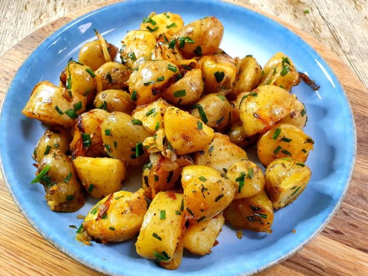 W dzisiejszym przepisie w roli głównej występują ziemniaki Royals Jersey. Mój ulubiony gatunek młodych ziemniaków. Przywiozłam je z przepięknej wyspy Jersey, aby pokazać Wam jeden z tradycyjnych sposobów ich przyrządzania. Każde inne młode ziemniaki będą wspaniale smakować przygotowane w ten sposób.