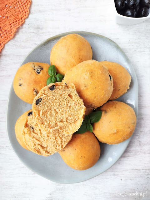 Domowe bułeczki z oliwkami zostały przygotowany z użyciem jasnej