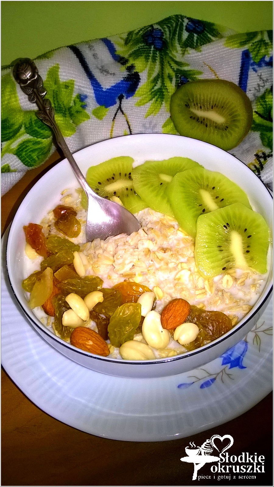 Śniadaniowa owsianka z kiwi i mieszanką studencką