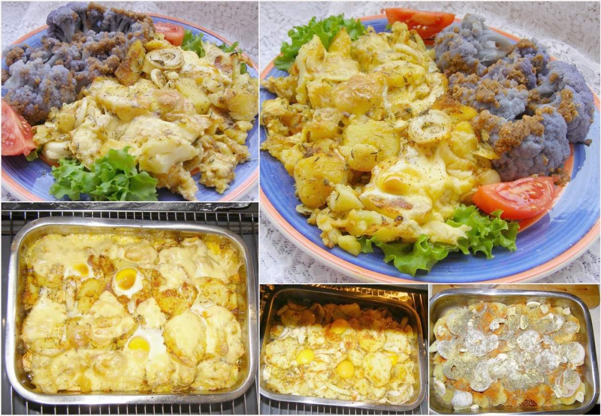 Składniki:ziemniaki 2 kg, olej rzepakowy 1/2 szklanki, sól ziołowa 1 łyżka, papryka słodka 1 łyżka, papryka ostra 1 łyżeczka, cebula 4 sztuki średnie, czosnek 1 główka, tymianek 2 łyżki, jajka 10 sztuk „M”