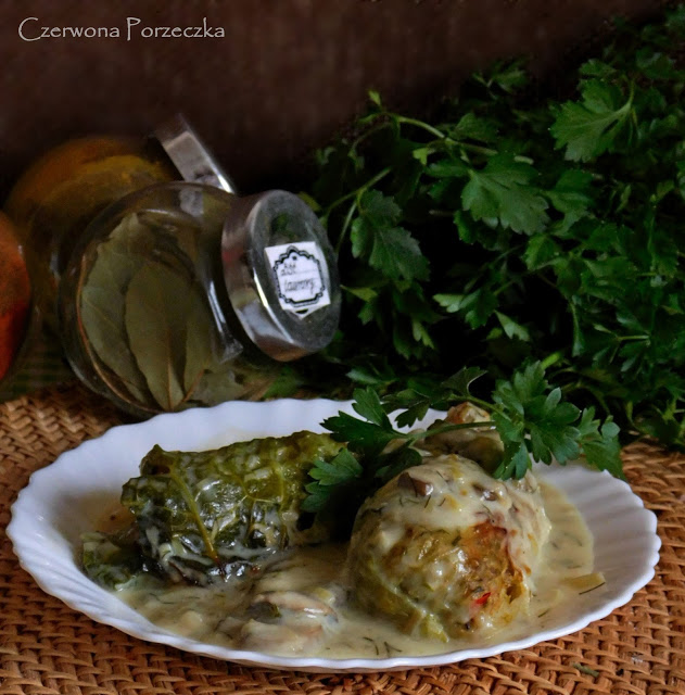Wegetariańskie gołąbki z kaszą gryczaną w sosie pieczarkowym
