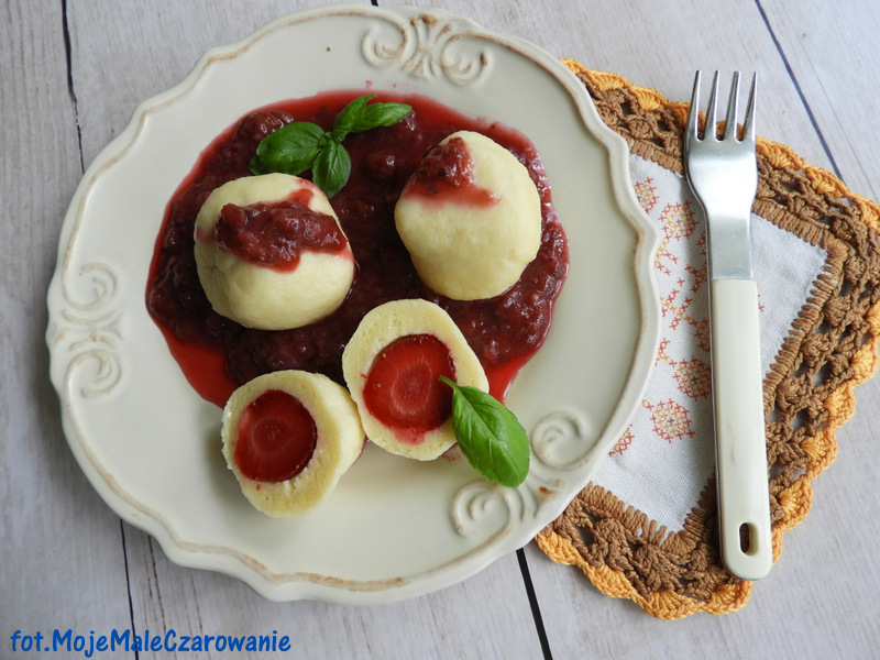 Leniwe kndle z truskawkami z sosem z czerwonego agrestu