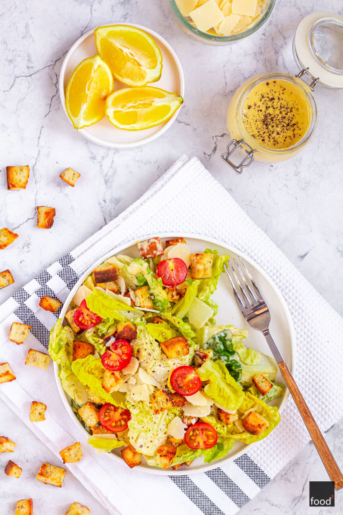 Latem lubię przygotowywać proste i lekkie posiłki. Dlatego w mojej kuchni rządzą wtedy sałatki. Jedną z prostszych do wykonania jest klasyczna sałatka Cezar. W tradycyjnym przepisie składa się wyłącznie z sałaty rzymskie, grzanek oraz parmezanu. Jednak najważniejszy jest w niej charakterystyczny dressing, który składa się z domowego majonezu na bazie
