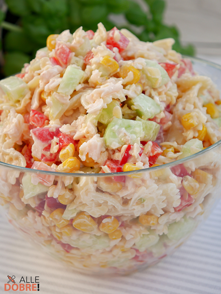 Dzisiejsza propozycja na sałatkę z żółtym serem jest bardzo smaczna i pożywna. Doskonale sprawdzi się na kolację, lub jako przekąska na imprezowym stole. Jest prosta w