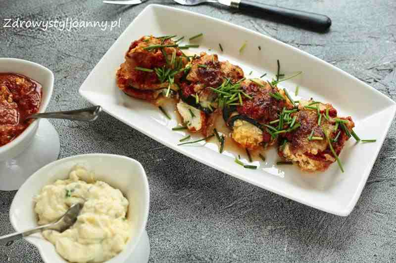 Roladki z cukinii faszerowane serem ricotta. Zdrowe roladki z cukinii nadziewane ricottą, serem mozzarella i bazylią, a całość polana pysznym sosem marinara, który wykonany jest z