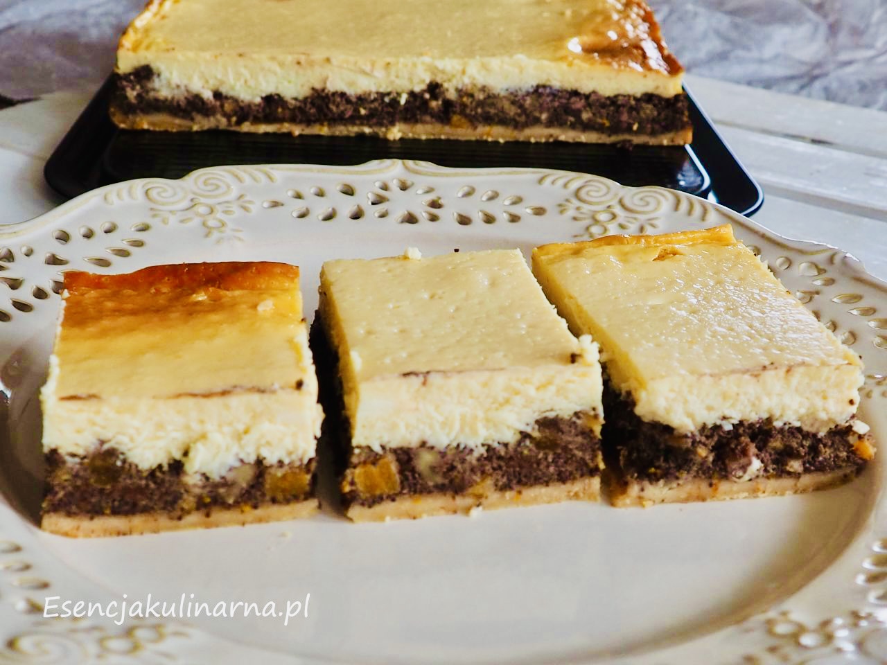 Pyszny serniko – makowiec na spodzie z ciastek maślanych. Szybki w przygotowaniu, to też duża zaleta:)