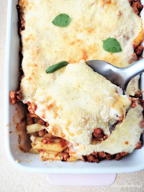 Zapiekanka makaronowa z mięsem mielonym i beszamelem
