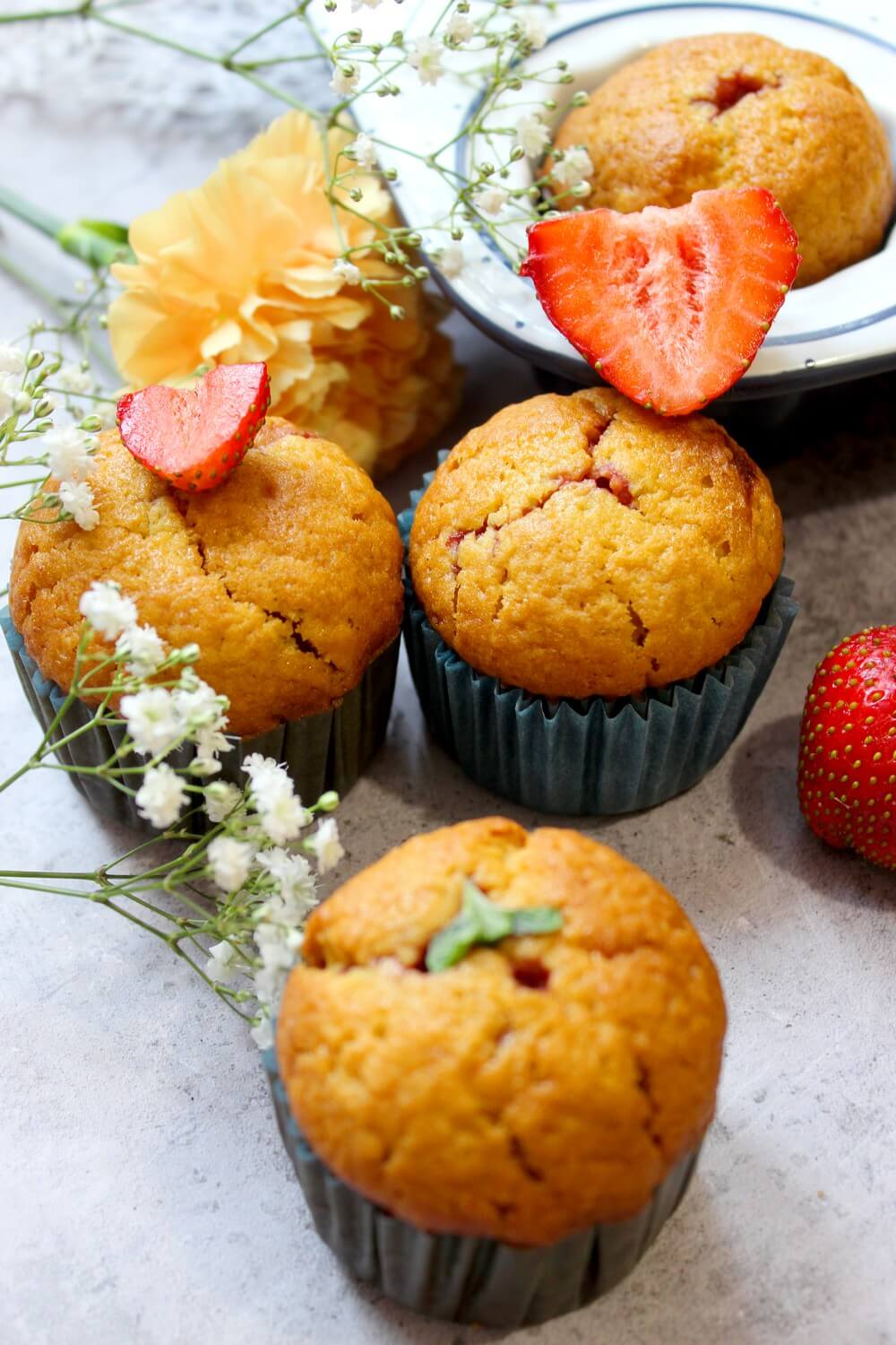 Babeczki z truskawkami na napoju owsianym Lubicie szybkie, małe wypieki? Dziś polecam…