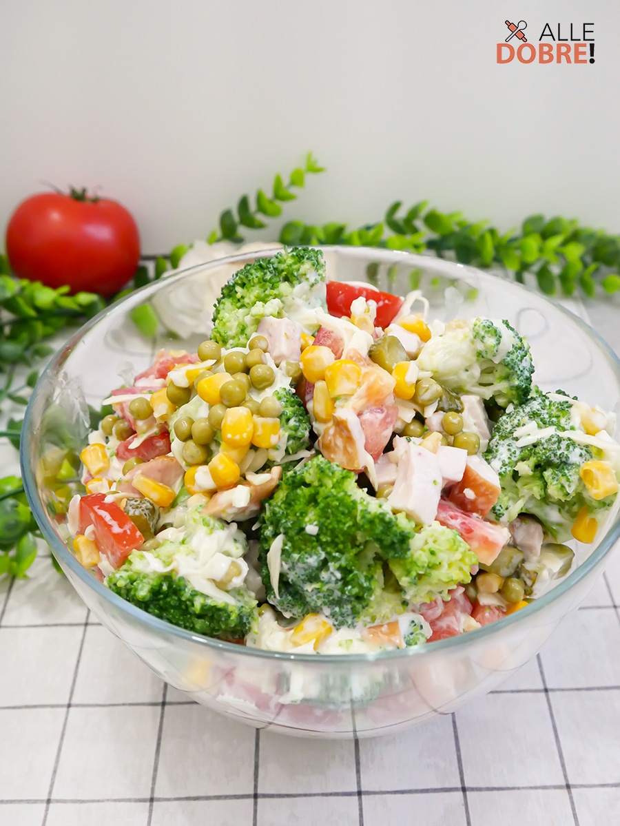 Sałatka kolacyjna to bardzo smaczna i łatwa w przygotowaniu sałatka, która znika z talerzy w oka mgnieniu. Jest Wyrazista, sycąca i kolorowa. Najczęściej przygotowuję ją na kolacje rodzinne stąd jej nazwa, jednak nic nie stoi na przeszkodzie, aby przygotować ją np. na śniadanie czy na obiad.