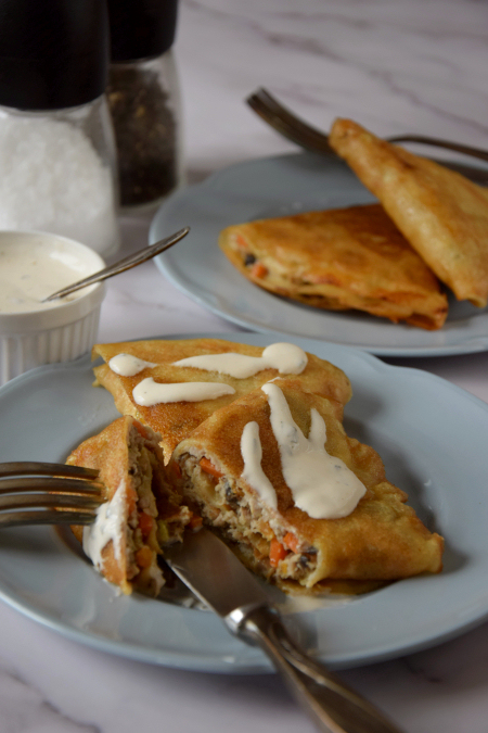 Te naleśniki to mały eksperyment, chciałam spróbować czy jak się nadzieje naleśniki surowym mięsem to czy ono się w nich upiecze. Miałam pewne wątpliwości… Efekt końcowy jak i smakowy zaskoczyły mnie bardzo pozytywnie – wszystko wyszło idealnie, przepysznie. Zwykłe naleśniki zamieniły się w cudowne danie- kolejny raz! Naleśniki