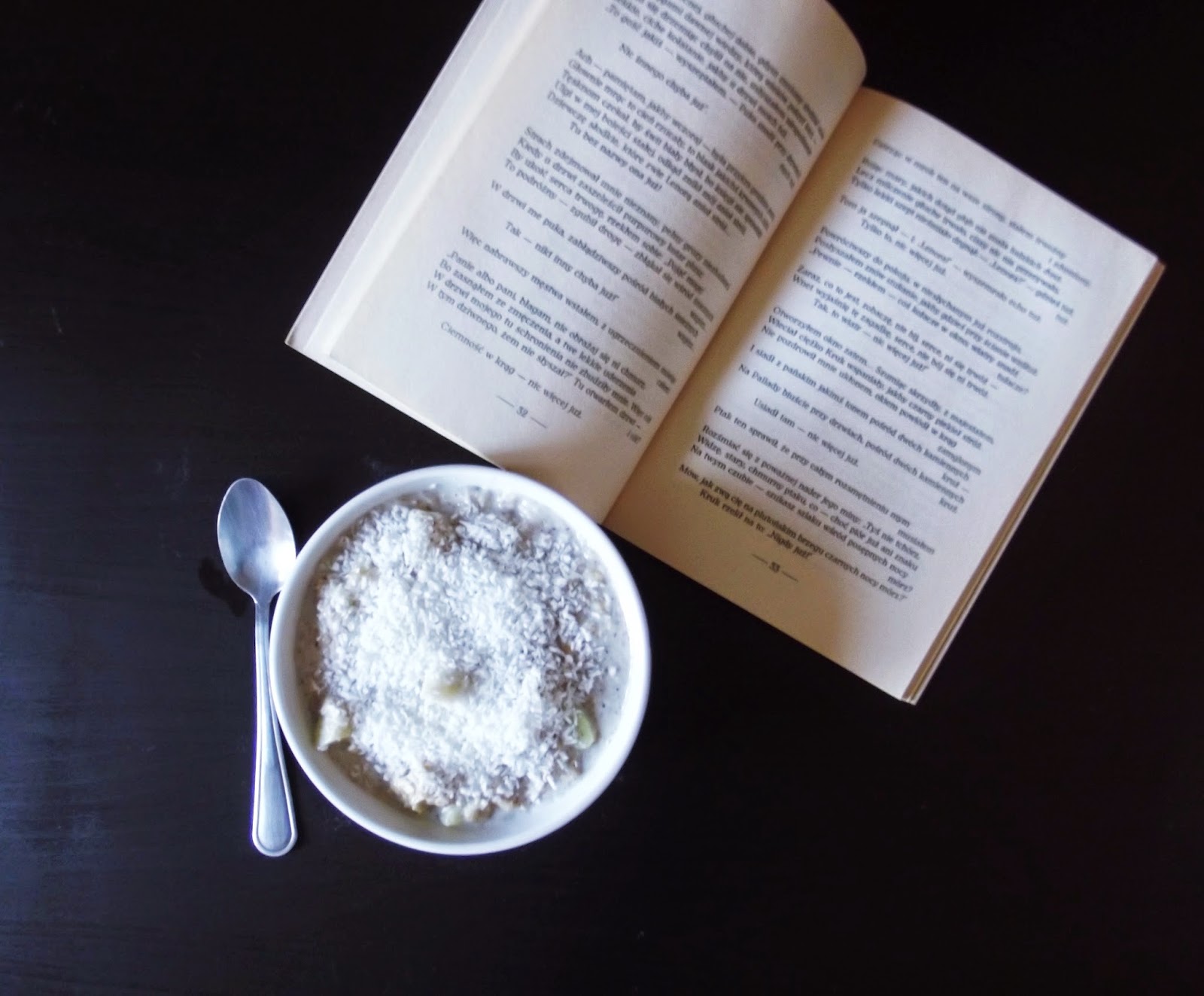 owsianka z siemieniem lnianym, miodem, aromatem cytrynowym, gruszką i wiórkami kokosowymiporridge with…