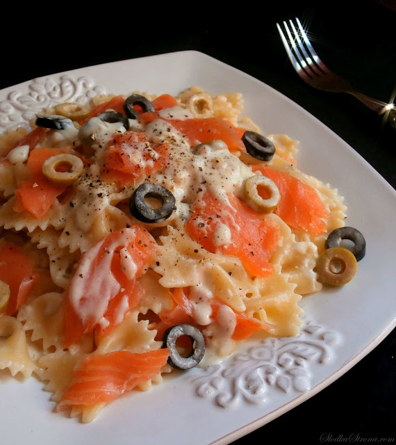 Makaron z łososiem wędzonym i oliwkami w delikatnym sosie śmietanowym to szybkie,…