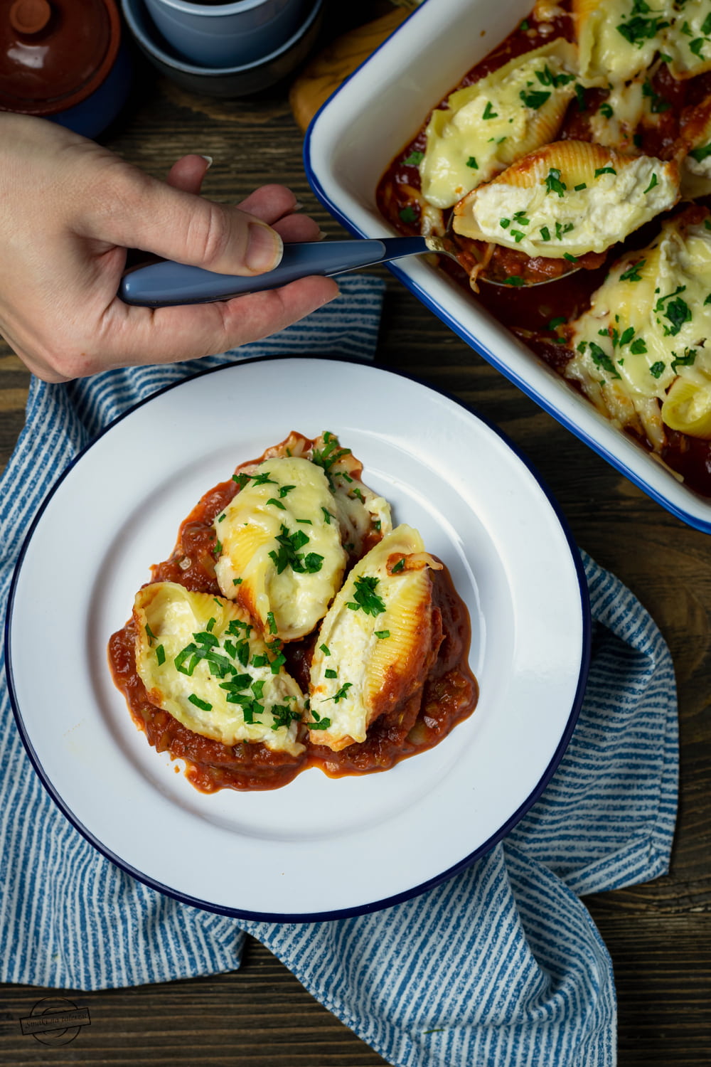 Pomysł na bezmięsne danie? Proszę bardzo! Makaronowe muszle z nadzieniem serowym zapiekane…