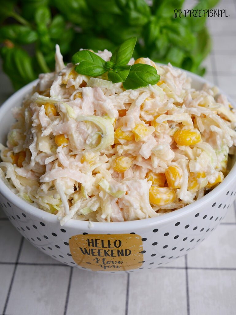 Sałatka na wieczór to bardzo smaczna sałatka, która idealnie sprawdzi się na każdą okazję. Składa się ona z kilku prostych składników, które można zakupić w każdym sklepie. Do jej przygotowania potrzebujemy szynki, sera żółtego, pora, kukurydzy oraz selera konserwowego.