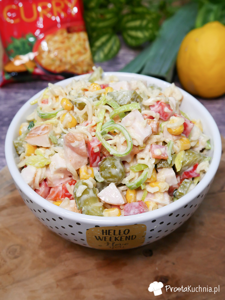 Sałatka z makaronem z zupek chińskich to szybka i prosta sałatka, która świetnie sprawdzi się na przyjęcie, na kolację lub nawet w pudełeczko do pracy.