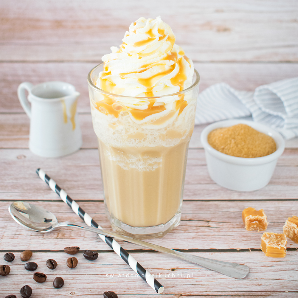Idealne na ciepłe dni, banalnie proste do wykonania i przepyszne – domowe frappuccino z sosem karmelowym. Zafundujmy sobie w domu, namiastkę kawiarenki 🙂