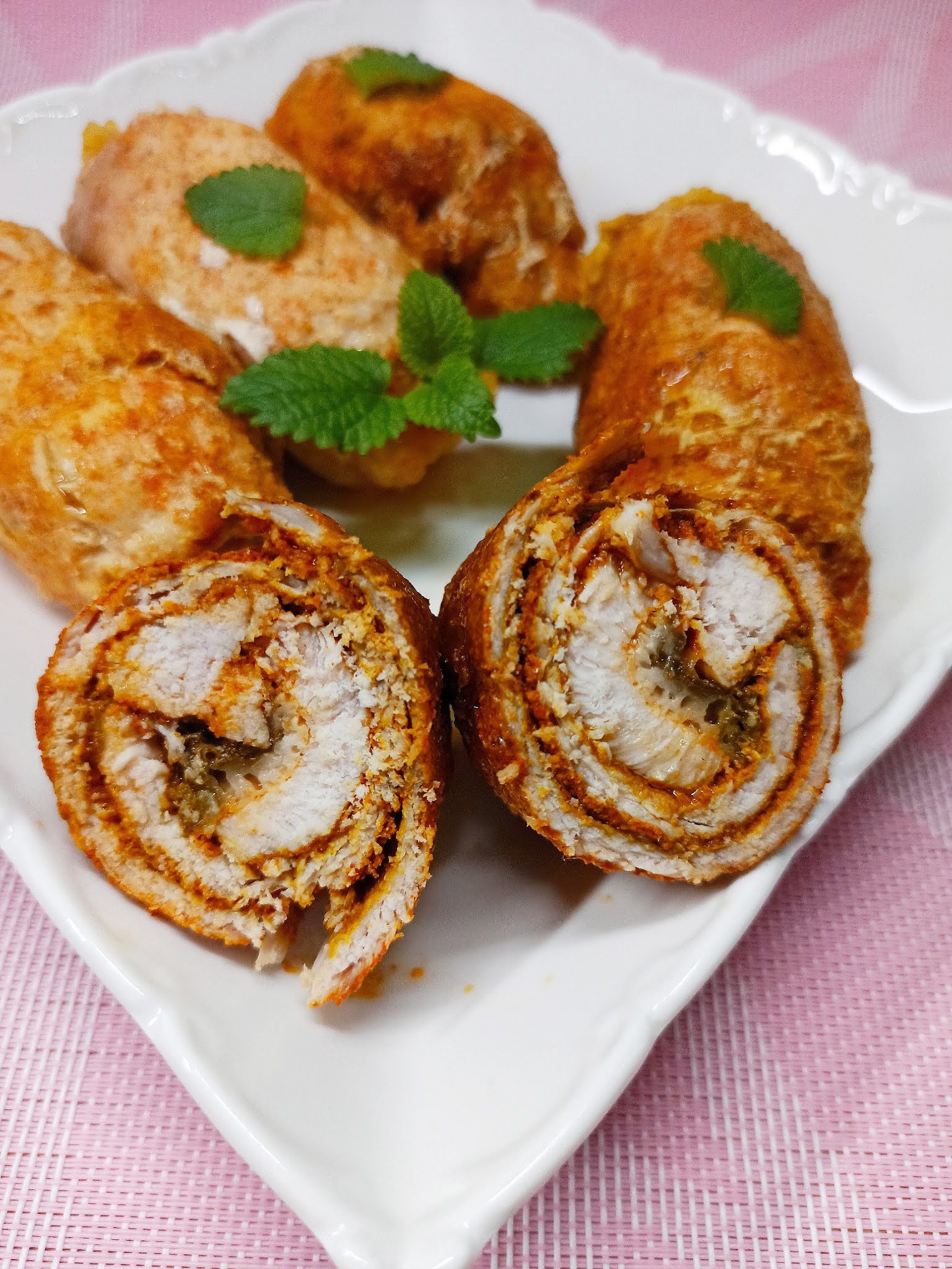 Roladki schabowe z dodatkiem kurczaka i mozzarellą pieczone piekarniku to świetny pomysł na pyszny i szybki obiad.