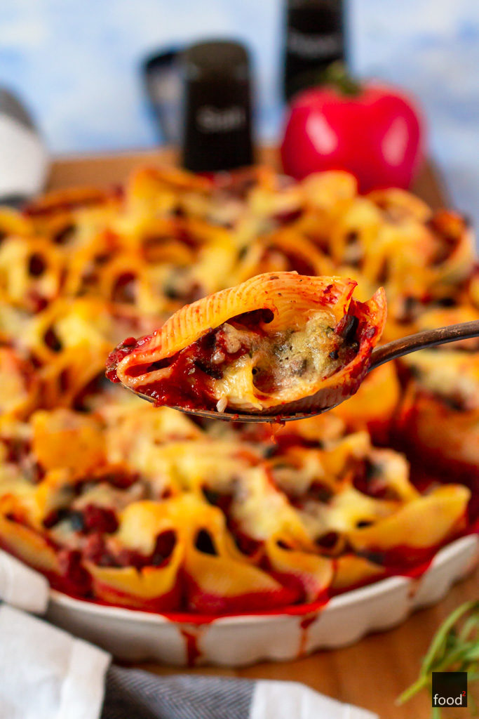 Jeśli kochacie proste przepisy na makarony we włoskim stylu, to lumaconi faszerowane mięsem mielonym, warzywami i mozzarellą jest zdecydowanie dla Was. Danie to powstało dość spontanicznie. Chciałem wykorzystać piękny makaron lumaconi, przypominający muszle ślimaków oraz kilka składników, które akurat miałem pod ręką. Muszelki nadziałem pysznym farszem z mięsa mielonego,