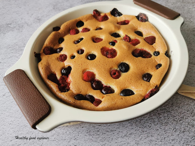 Sezon na maliny i borówki się u mnie nie kończy. Tym razem propozycja na śniadanie, deser lub podwieczorek, czyli puszysty omlet pieczony. Bez białego cukru oraz glutenu, banalny w przygotowaniu. Takie trochę ciasto, które można potraktować jako pożywny posiłek.