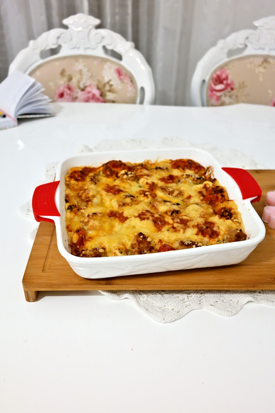 Czosnkowe bułeczki zapiekane z pulpecikami