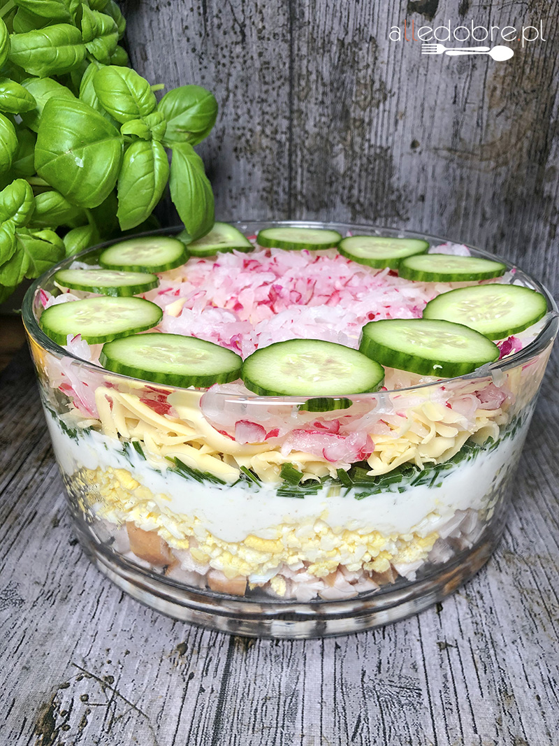 Sałatka ufo to bardzo smaczna sałatka, idealna na każdą okazję. Swoją nazwę zawdzięcza dekoracji z ogórka, która swoim wyglądem przypomina ufo. Sałatka składa się z kolorowych i smacznych składników, które poukładane warstwowo sprawiają, że sałatka bardzo ładnie prezentuje się na stole.