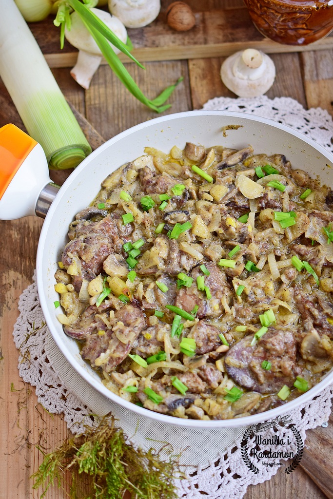Wątróbka drobiowa z pieczarkami i jabłkiem