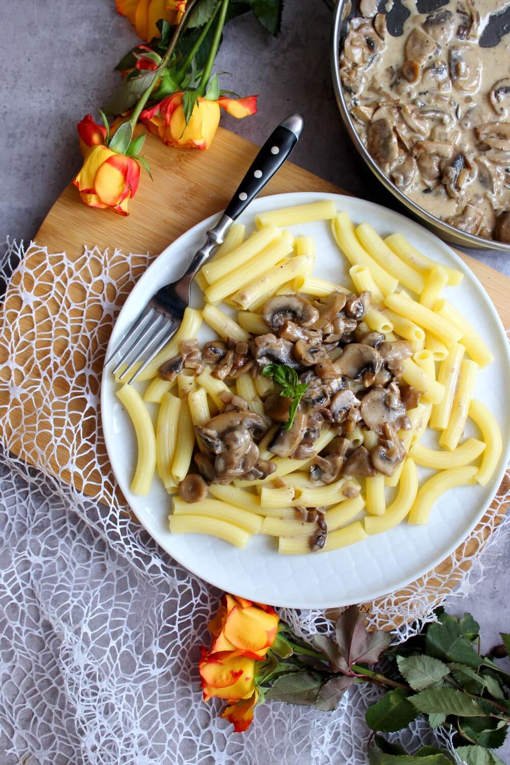Makaron z sosem pieczarkowym z dodatkiem leśnych grzybów