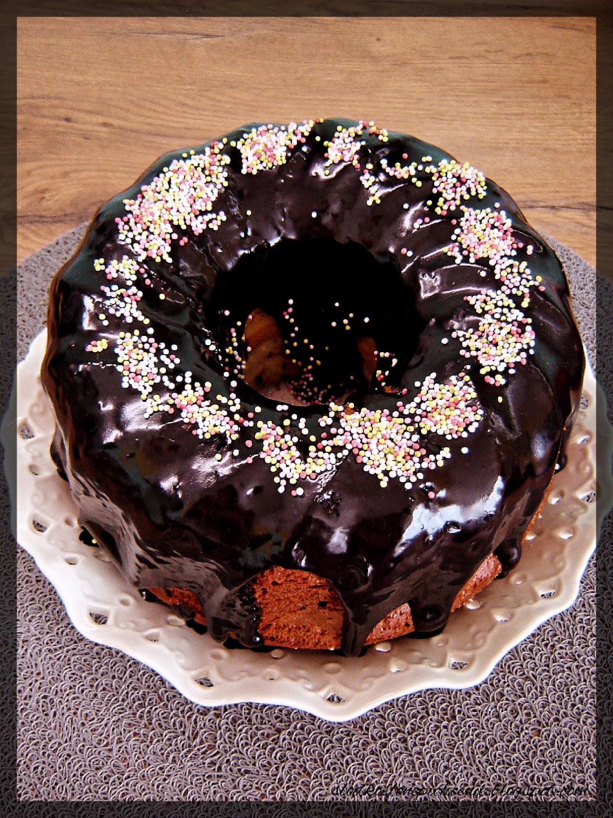 Pyszna i puszysta babka na maślance z kawałkami gorzkiej czekolady i polewą…