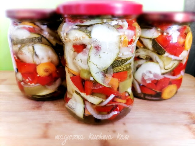 Tym razem podam Wam przepis na pyszną sałatkę z cukinii, papryki oraz