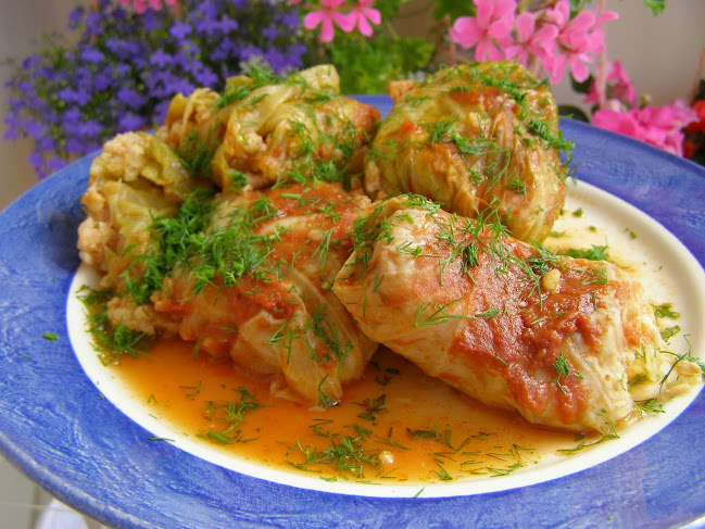 Składniki: młoda kapusta 2 główki większe, olej rzepakowy 2 łyżki do parzenia kapusty, ryż do gotowania 2 szklanki, mielona karkówka 50 dag, przyprawa do karkówki 1 opakowanie, kucharek 2 łyżki, pieprz czarny 1 łyżeczka, papryka słodka 1 łyżka, jajka 2 sztuki, koperek siekany 1/2 pęczka, woda 3 szklanki, sok