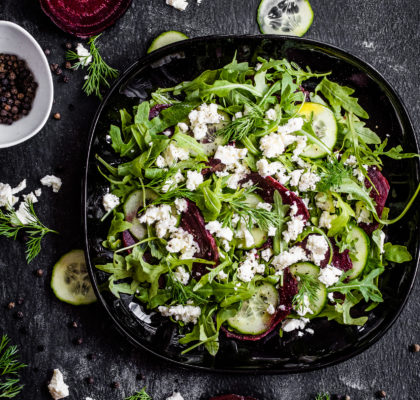 Sałatka z pieczonym burakiem, rukolą i fetą