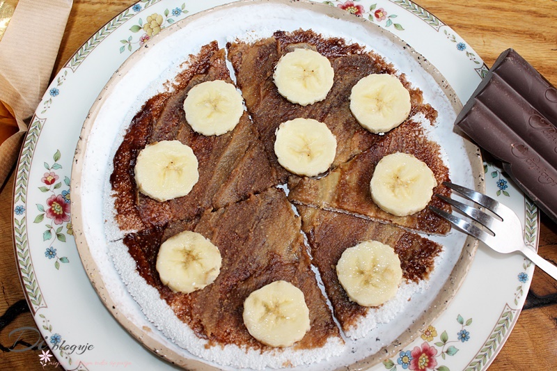 Placek z tapioki z bananem, masłem orzechowym i czekoladą