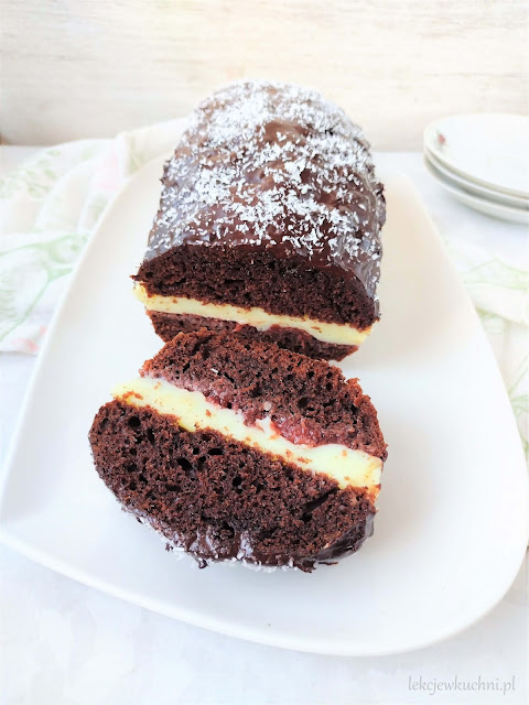 Czekoladowa babka z budyniem i dżemem
