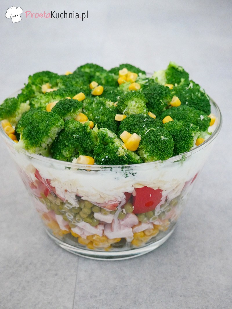 Warstwowa sałatka z brokułem sprawdzi się idealnie na różne domowe przyjęcia, imprezy, czy zwykłą kolację.