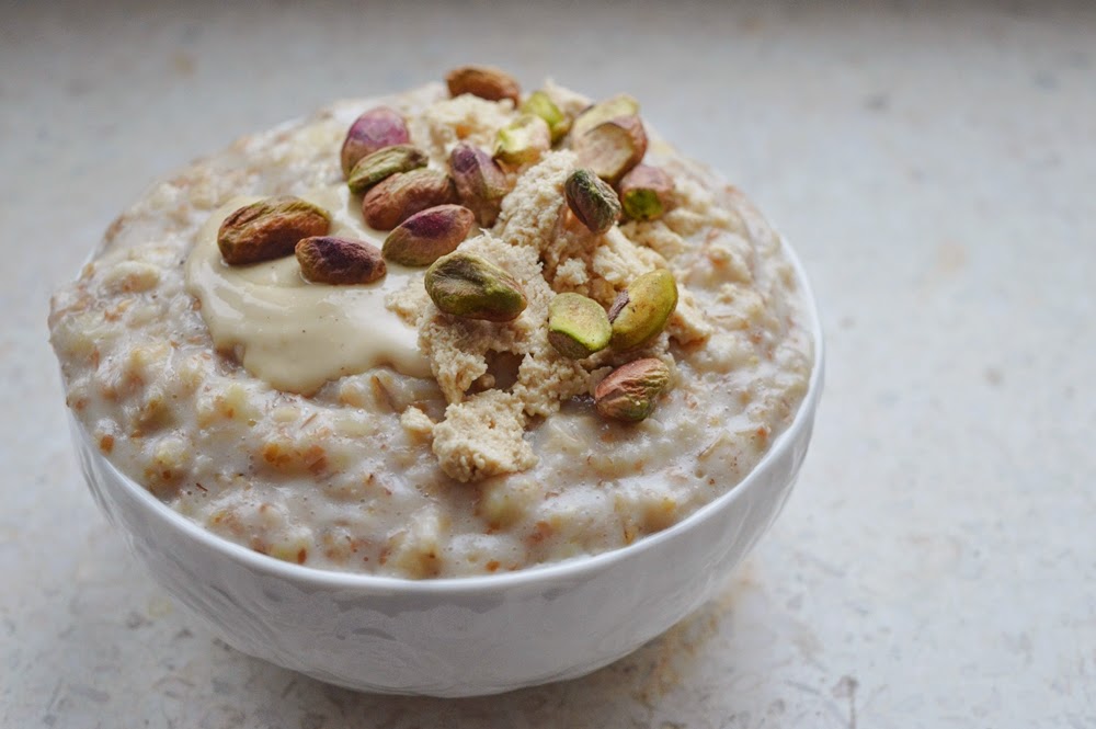 bananowa owsianka z chałwą, masłem z nerkowców i pistacjami chyba odkryłam swoje…
