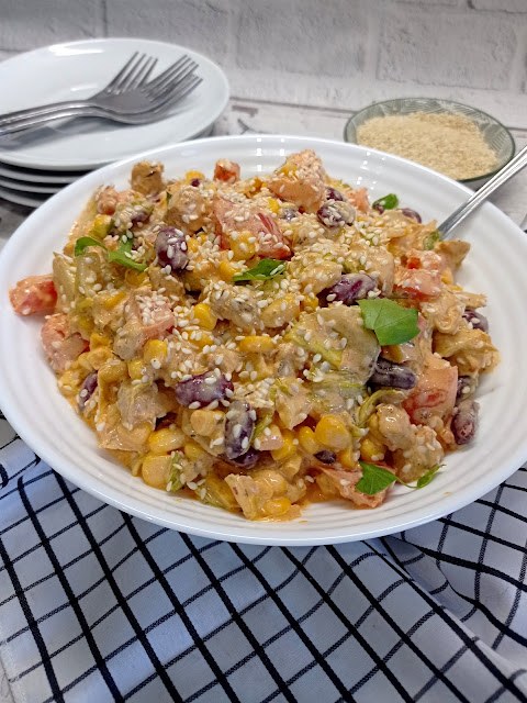 Sałatkę przygotowałam na totalnym spontanie 🙂 z tych składników które miałam akurat…