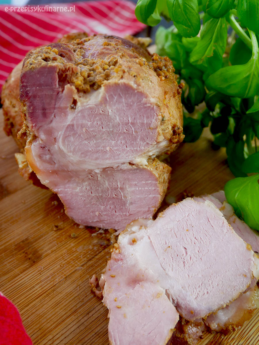 Musztardowa szynka gotowana w rękawie do pieczenia jest bardzo prosta do zrobienia, a wychodzi smaczna, aromatyczna i idealnie krucha. Robi się ją też bardzo szybko, jednak należy pamiętać, że po przygotowaniu marynaty, mięso najlepiej odstawić przynajmniej na dwa dni, aby się zamarynowało.