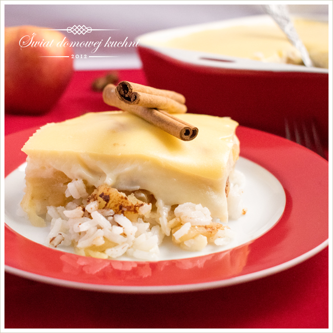 Ryż zapiekany z budyniem i jabłkami