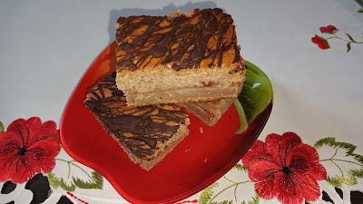 6 jajek0,5 szklanki cukru kryształ225 g marmolady z pigwy250 g margaryny135 g jogurtu morelowego1,5 szklanki mąki pszennej1 szklanka mąki ziemniaczanej1 łyżka proszku do pieczeniaDodatkowo:słoik dżemu truskawkowego (280g)ok. 50 gorzkiej czekoladyPrzygotowanie: