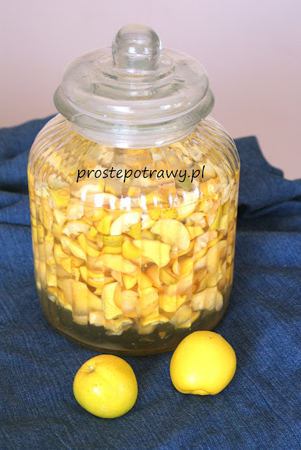 Te najbardziej żółte pokroiłam w cienkie plasterki i zasypałam cukrem. Słój postawiłam w słońcu.