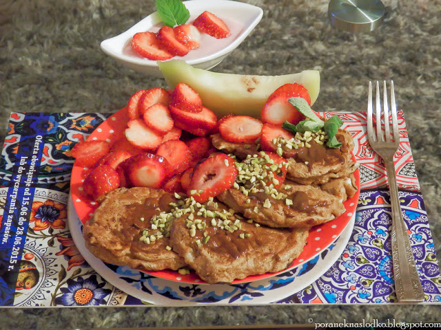 Czekoladowe placki z serka wiejskiego i mąki z kassawy podane z kremem…
